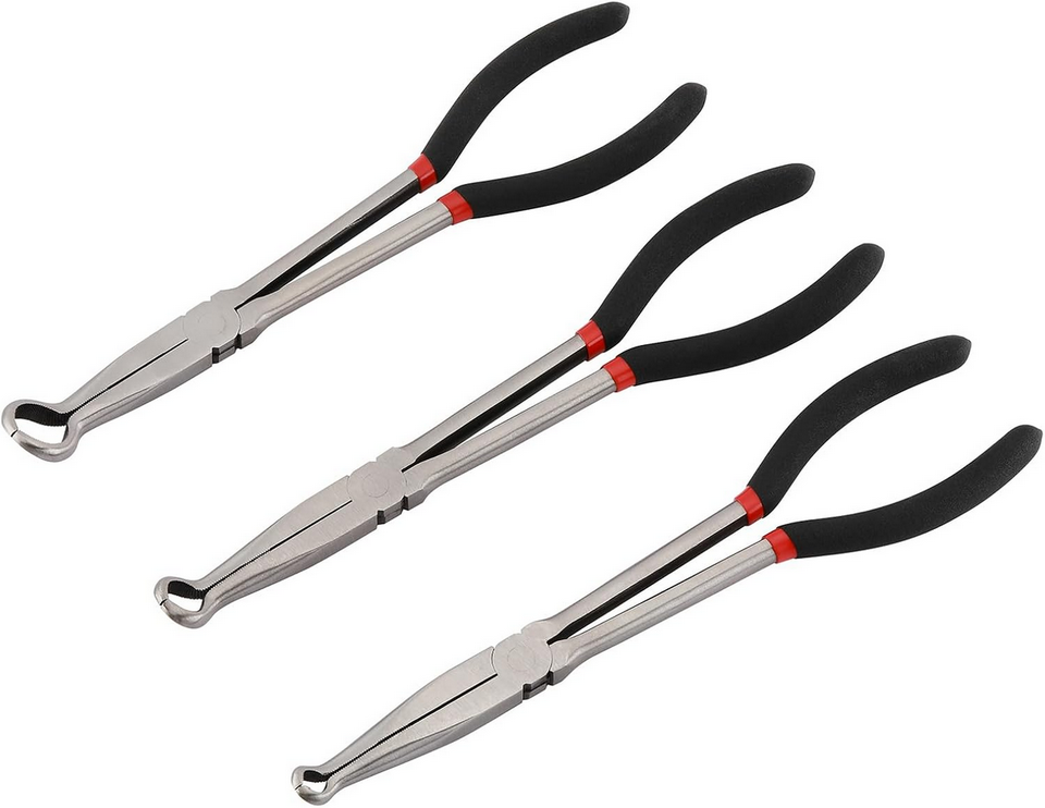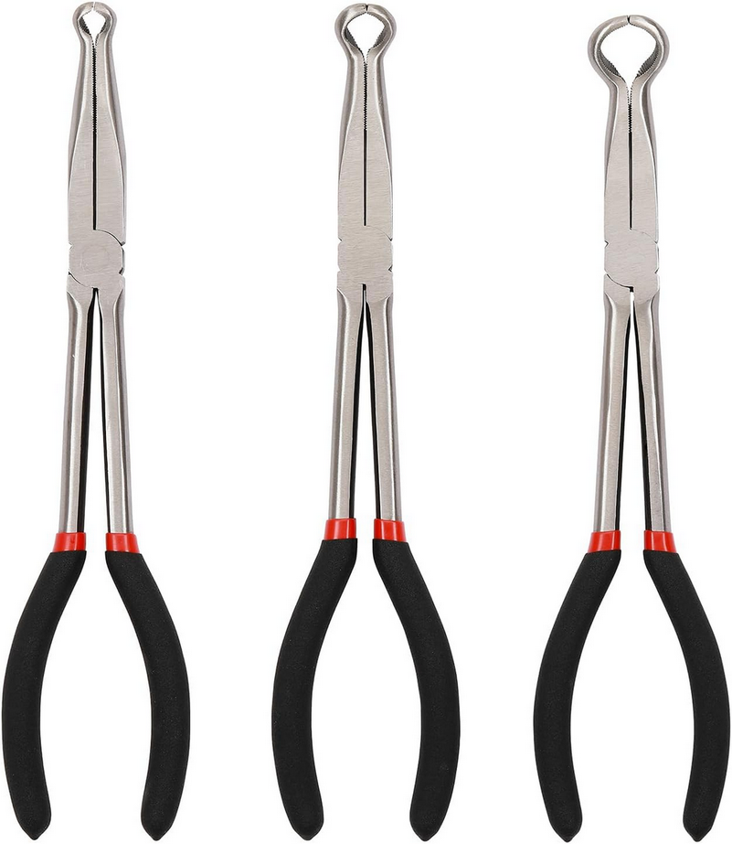 These set contains 3 hose grip pliers with different diameters, including 5/16 inch, 1/2 inch and 3/4 inch. 11" Long design for extended reach in tight spaces.
