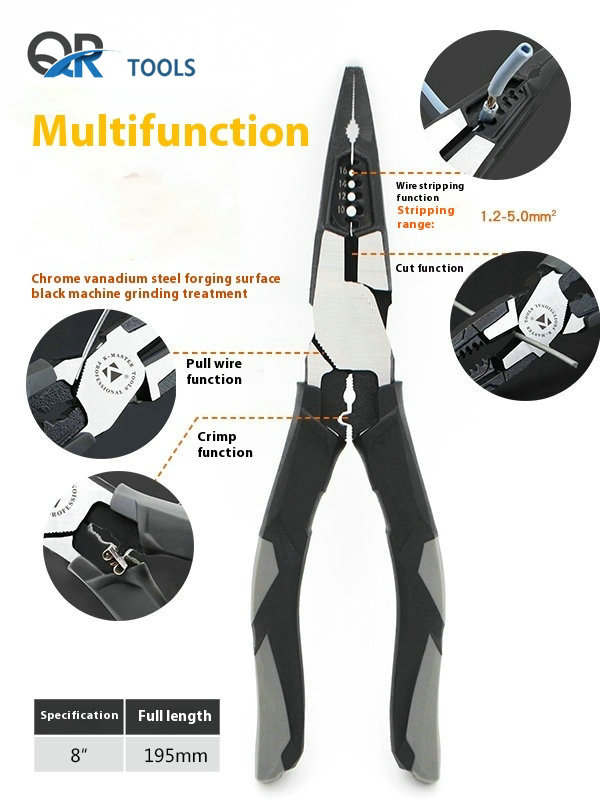 Labor-saving and Sharpness: Eccentric and labor-saving design, extremely labor-saving when cutting. The overall hardness of the combination pliers is 35-50HRC, and the hardness of the cutting edge is 55-65HRC. Easy to cut with sharp edges, save 30% force than ordinary pliers