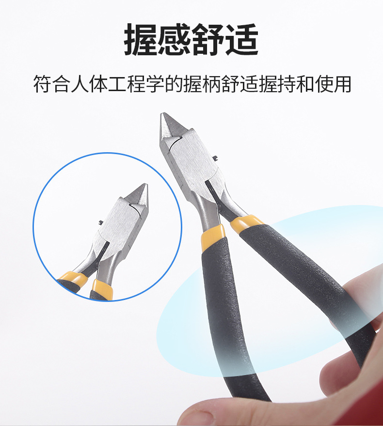• Diagonal Cutters Edge:Edge is high-frequency processing, sharp and durable, suitable for plastic flash,.electronic circuit welding thread pruning.