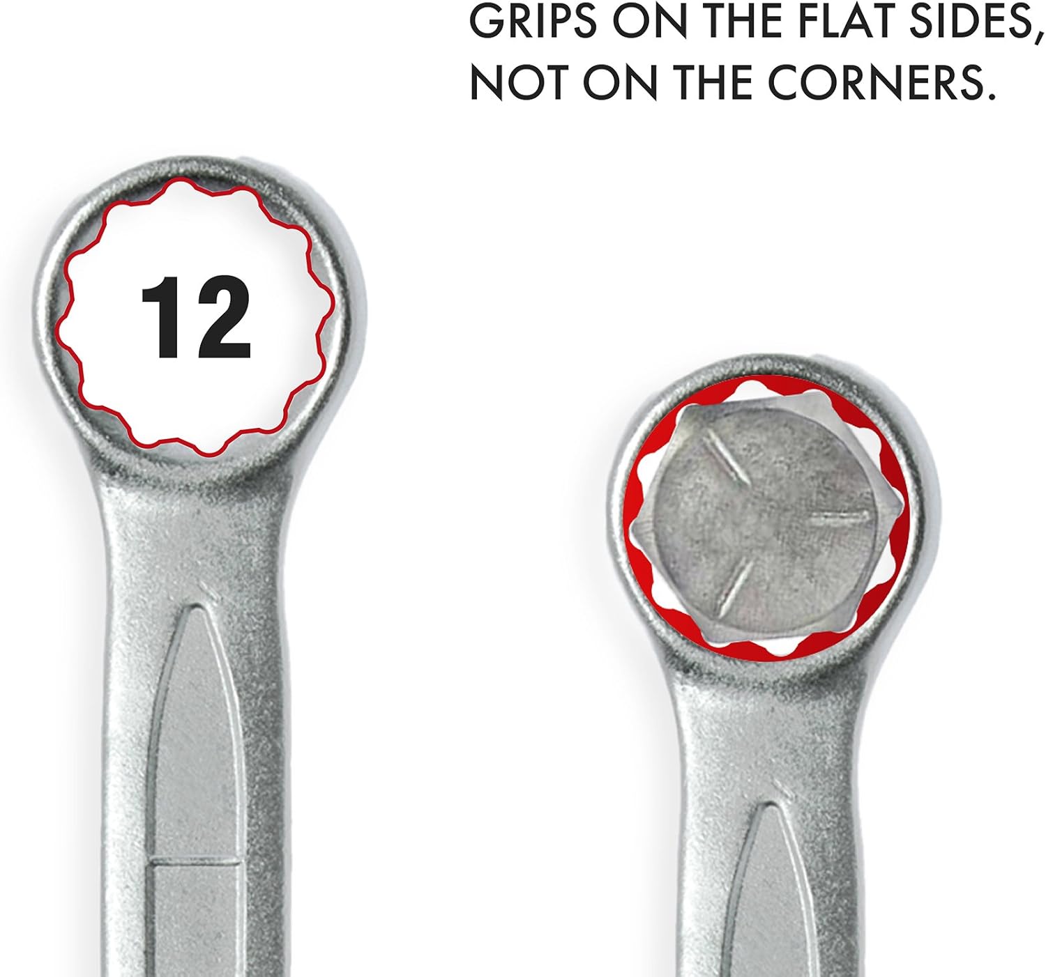 12-Point Box End - Precision-machined for an exact fit, offering more grip and less wear than standard 6-point wrenches.