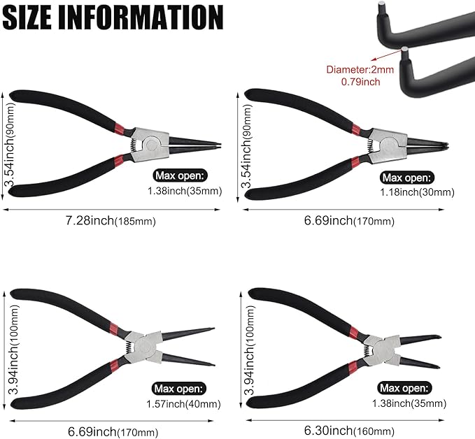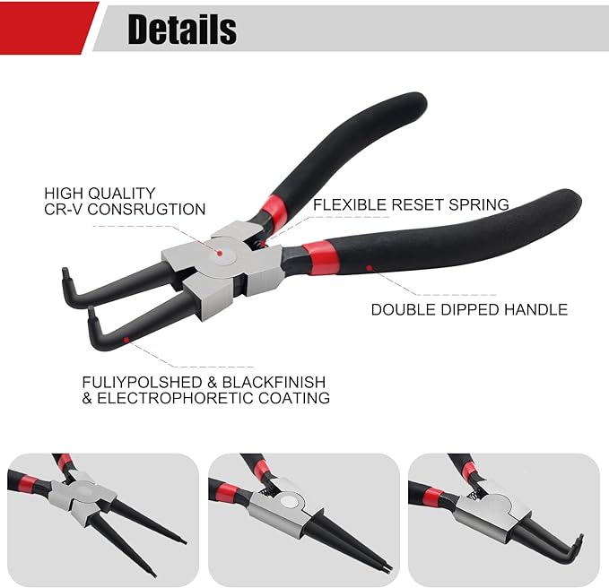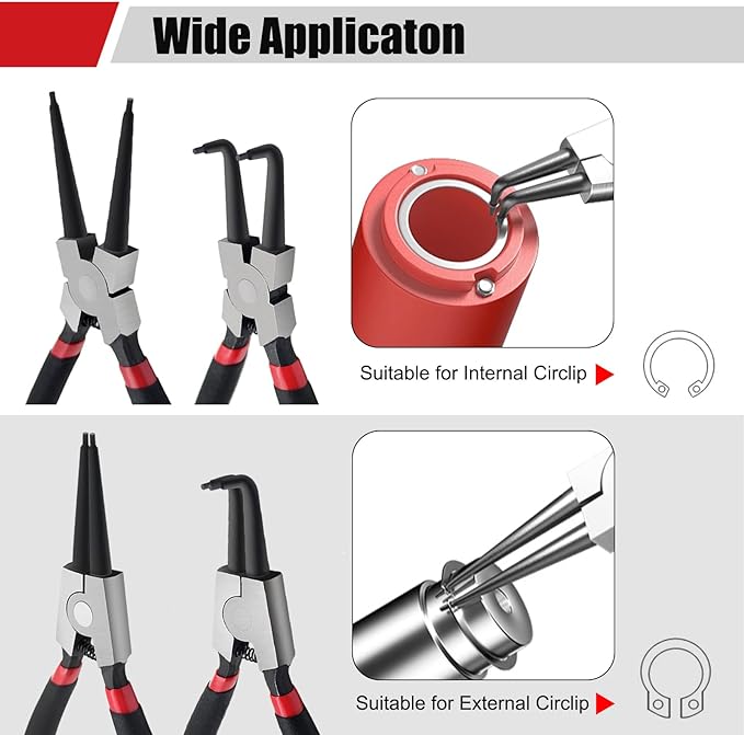 -Internal & External snap ring pliers with fine tips can easily reach into tight spaces, grip small parts and bend wire